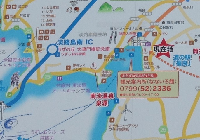 淡路インターで高速を降り国道28号線を南へ向かって福良まで進み、